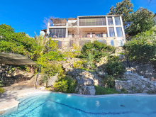 Vence - Villa néo provençale de 155 m2 comprenant au rez-de-chaussée : Entrée, séjour avec coin repas, cuisine équipée, chambre avec salle de bains WC et dressing, buanderie, WC indépendant. A l'étage : 3 chambres avec placards, salle de bains, salle de douche et WC indépendant. Grande terrasse couverte. Très beau jardin paysager de 1.500 m2 avec piscine 10x5. Garage Les informations sur les risques auxquels ce bien est exposé sont disponibles sur le site Géorisques : www.georisques.gouv.fr