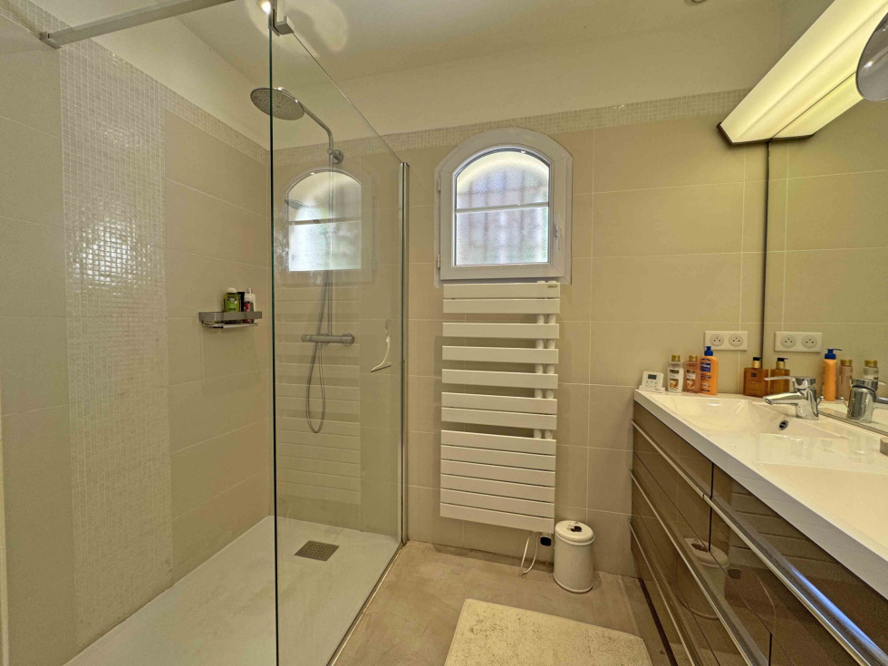 Située dans un domaine fermé, au calme et proche du centre de Vence, villa provençale de 180 m2 comprenant un séjour avec cheminée de 59 m2, cuisine équipée, bureau, chambre avec dressing et salle de douches, chambre avec salle de bains, 2 chambres, salle de douches, buanderie. Vue dégagée jusqu'à la mer. Terrain de 2.000 m2 avec piscine chauffée, terrain de pétanque, garage et abri voitures. Les informations sur les risques auxquels ce bien est exposé sont disponibles sur le site Géorisques : www.georisques.gouv.fr