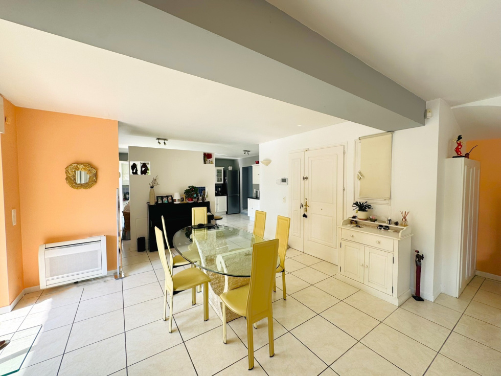 Idéalement située dans un quartier résidentiel, cette villa de 134 m2 sur une parcelle de terrain de 1000 m2 vous charmera; son extérieur est intimiste autour d'une piscine en forme de lac. La vue est dégagée sur le Village de Saint Paul de Vence. Son intérieur est facile à vivre. Un espace de vie généreux et très lumineux ( Salon-salle à manger avec cheminée à foyer fermé, une cuisine semi ouverte et équipée). Deux chambres avec une salle d'eau et wc. A l'étage, deux chambres dont une avec sa salle d'eau, une salle de bains indépendante. Un wc indépendant. L'ensemble bénéficie d'une climatisation réversible. Son assainissement est en tout à l'égout Le garage est accessible directement par la cuisine. Vos véhicules trouveront facilement à se garer.