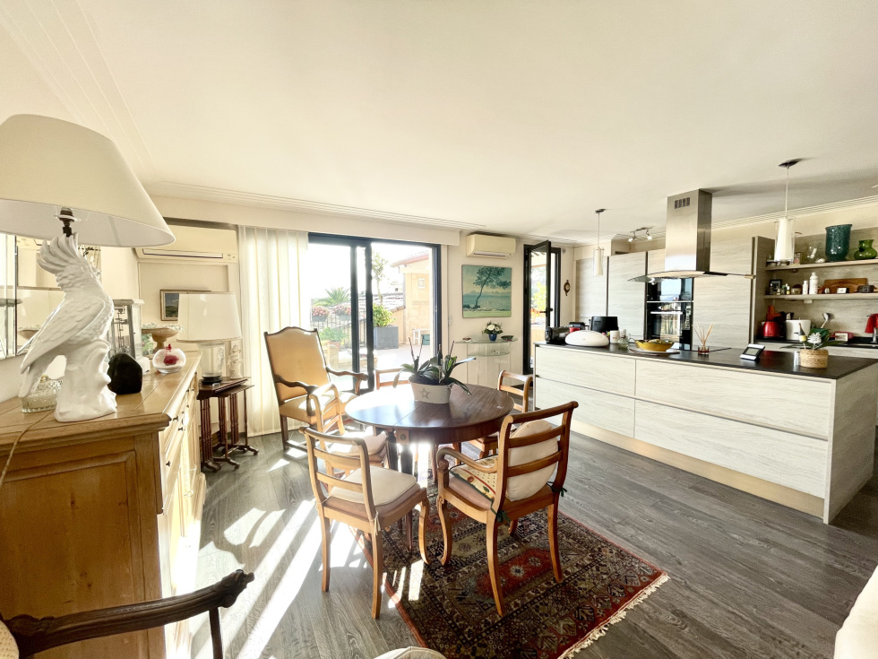 Entièrement rénové avec goût et des matériaux de qualité, ce superbe appartement-villa de 110 m² offre un cadre de vie d’exception à proximité du centre-ville. Il s’ouvre sur une terrasse de 68 m², en partie couverte avec une cuisine d’été bénéficiant d’une vue panoramique imprenable sur la mer, les montagnes et la vieille ville. L’entrée mène à une vaste pièce de vie de 52 m², prolongée par une cuisine moderne et fonctionnelle avec îlot central, pour un espace de réception convivial et lumineux grâce à sa triple exposition. Le plan a été conçu pour préserver deux espaces nuit distincts : •⁠⁠Suite parentale de 17,80 m² ouvrant sur un balcon, avec salle d’eau et WC indépendant, •⁠⁠Deuxième chambre, bureau ou troisième chambre, salle d’eau et WC séparé. Prestations de qualité : climatisation réversible, chauffage central individuel au gaz, grands volumes de rangement, baies double vitrage en aluminium, cuisine très bien équipée, salles de bains au goût du jour. En annexe : parking, cave et grand espace de stockage. Un bien rare à découvrir sans tarder !
