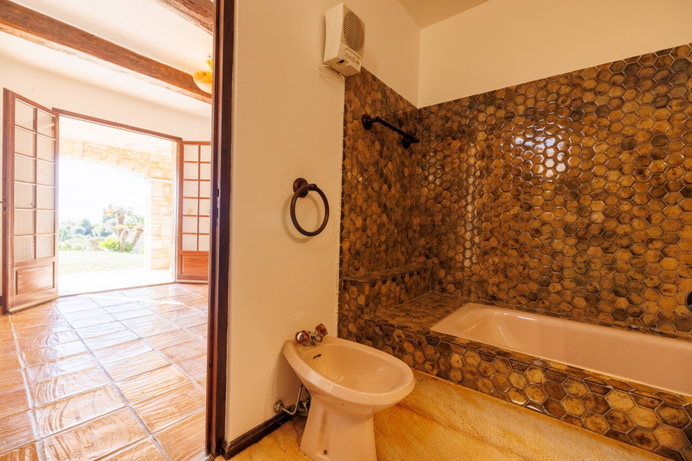 Une belle terrasse, sans aucun vis-à-vis, domine la mer et se prolonge naturellement vers le jardin, la cuisine d'été et la piscine.