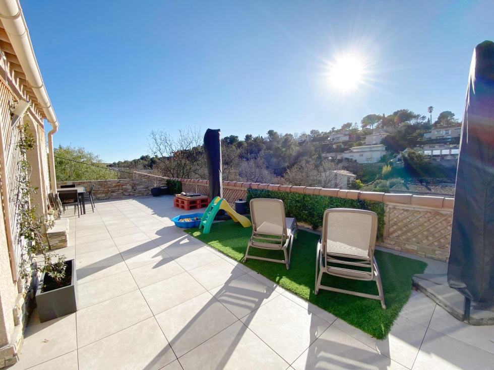 A l'extérieur : Véritable prolongement de l’appartement, une splendide terrasse exposée SUD-OUEST de 97m2. Un espace parfait pour accueillir famille et amis, autour d'un agréable coin barbecue couvert. Grand abri extérieur, idéal pour un stockage optimisé.