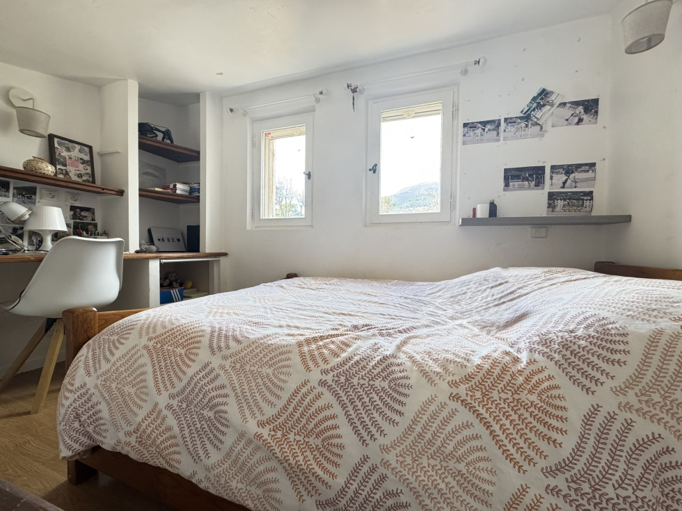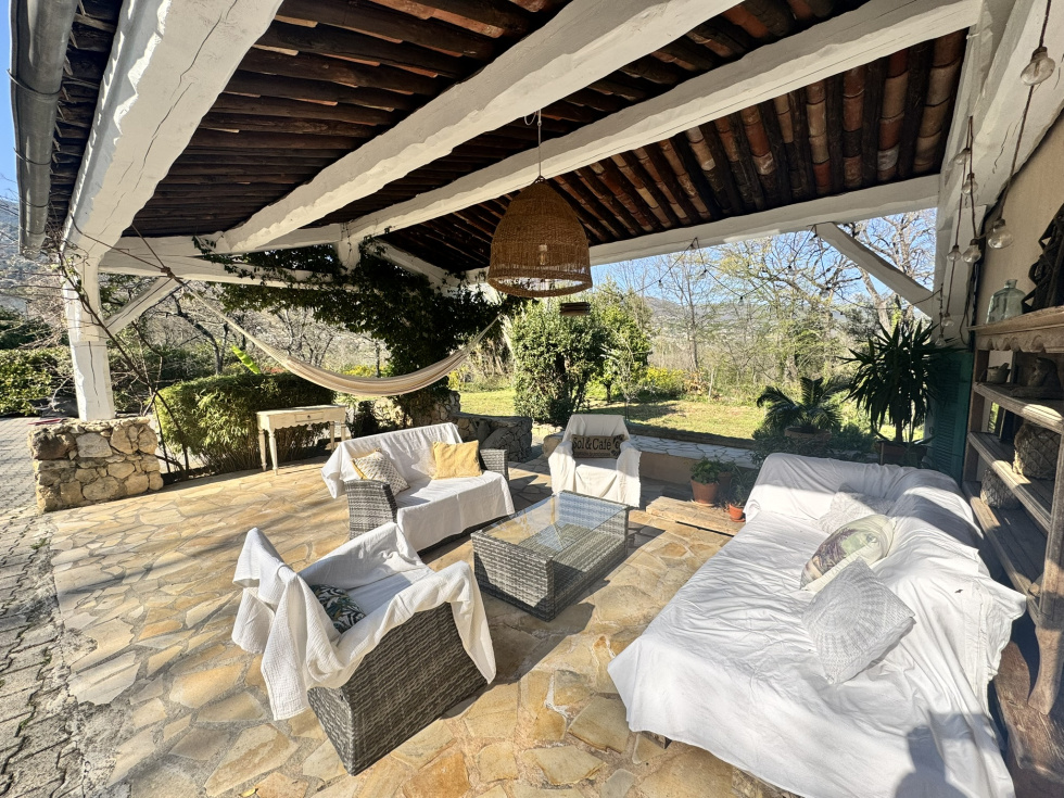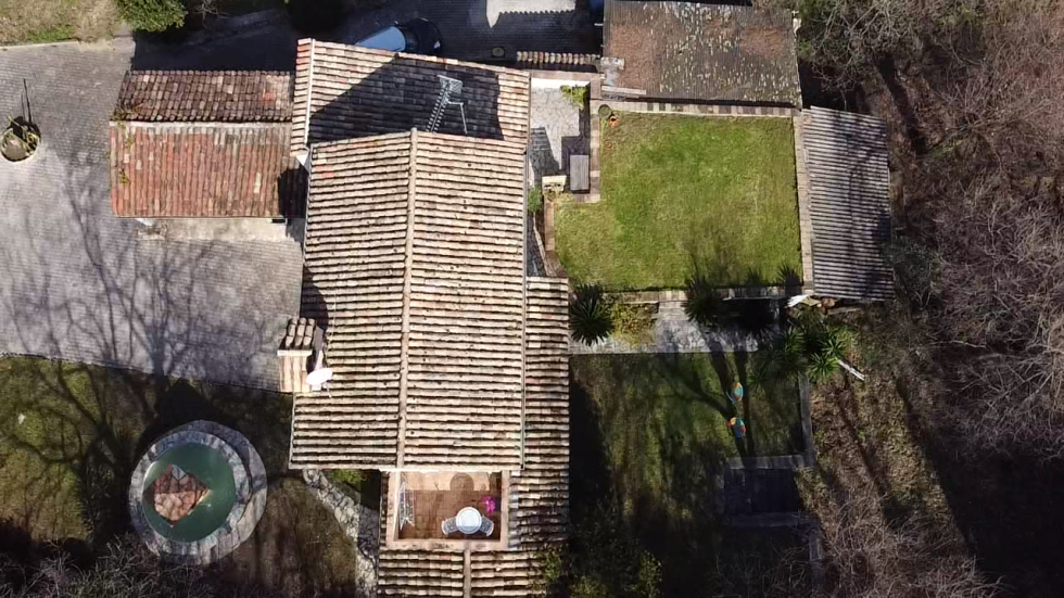 SOUS OFFRE // A l'ouverture du portail, nous découvrons une trés jolie villa provençale avec une fontaine en son centre et une terrasse. Cette villa de 110 m2 environ se trouve en pleine nature dans un lieu paisible, non loin du village. Une entrée chaleureuse ouvre ses portes sur un séjour salle à manger avec cheminée; une cuisine semi ouverte équipée. Cet ensemble profite d'une très grande terrasse abritée entièrement aménagée (Un four à pizza, barbecue...) L'espace nuit se compose d'un studio mezzanine (coin kitchinette, salle d'eau et petit salon) et d'une très grande chambre principale (Dressing, salle de bains, wc et espace bureau). A l'extèrieur, un atelier de 70 m2 (possibilité de le transformer en espace de vie ou autre). Le terrain est boisé avec une surface de 3900 m2. Vaste parking.