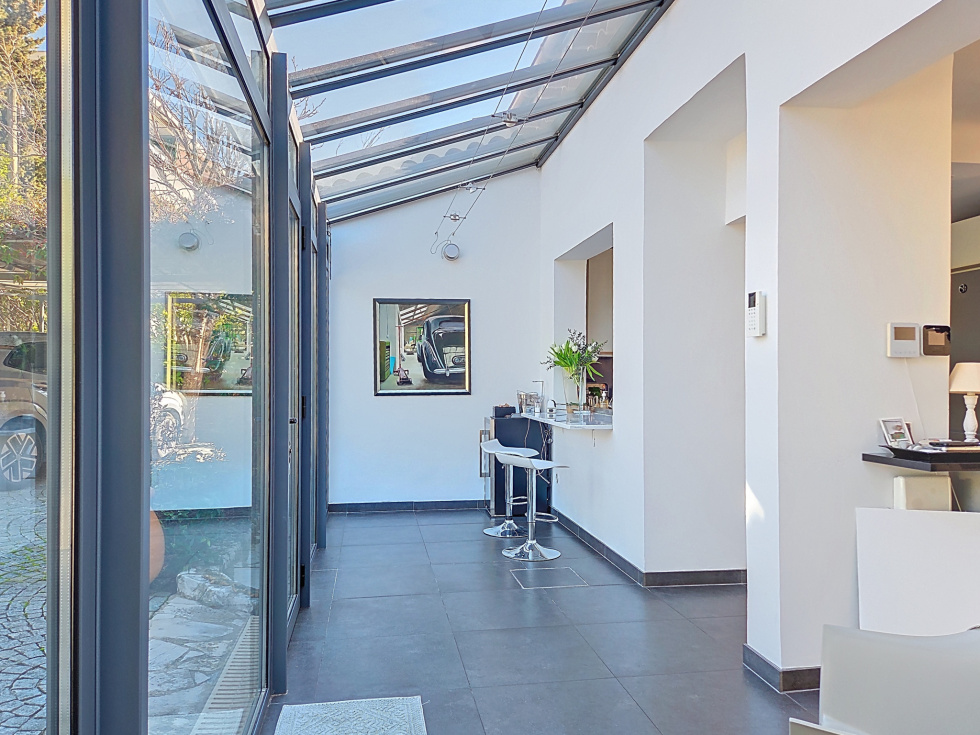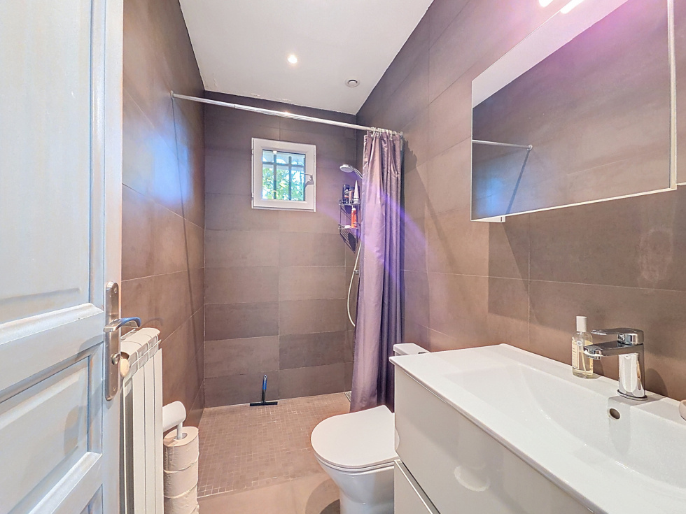 À l’extérieur, la propriété propose également une dépendance utilisée en atelier et espace de rangement, un abri voiture, plusieurs emplacements de stationnement, ainsi qu’un bel espace de vie comprenant une piscine, des terrasses et un espace barbecue.