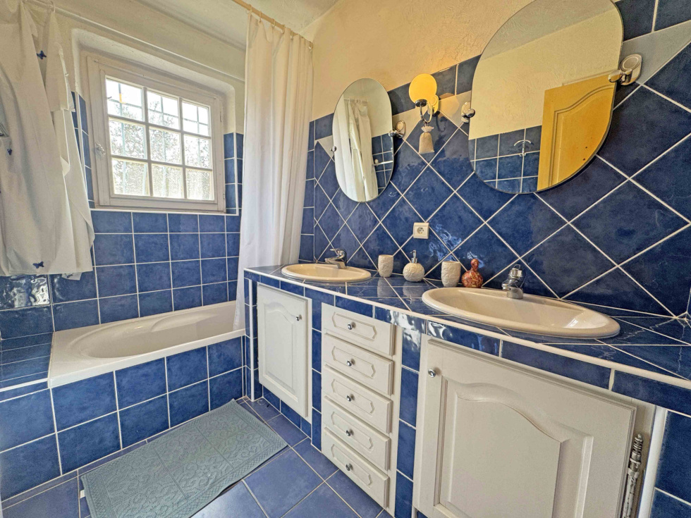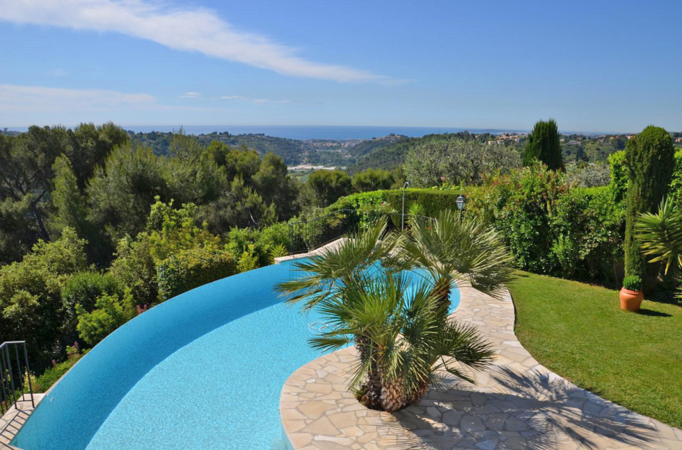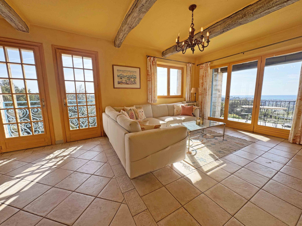 Située dans un domaine sécurisé de grand standing au sud de Vence et au calme absolu, villa en partie en pierres de 185 m2. Jardin paysagé de 2.050 m2 avec piscine chauffée et à débordement. Superbe vue dégagée sur la mer et le Cap d'Antibes. Grand séjour avec cheminée et coin repas 60 m2, cuisine équipée 19 m2, 4 chambres, 3 salles de bains, dressing. Charges annuelles : 480 euros - Copropriété de 40 lots Les informations sur les risques auxquels ce bien est exposé sont disponibles sur le site Géorisques : www.georisques.gouv.fr