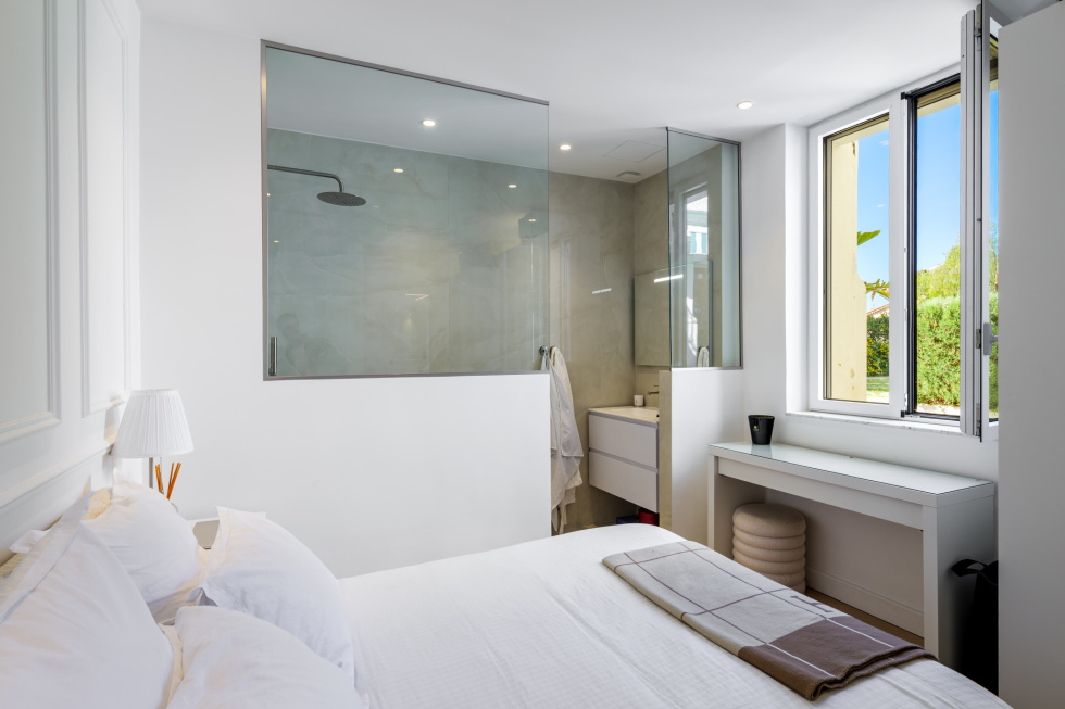Situé dans l'une des adresses les plus confidentielles de Cannes, ce somptueux appartement en rez-de-jardin a fait l'objet d'une rénovation totale. Alliant épure contemporaine et prestations de luxe, ce bien d'exception offre une expérience de vie unique, aux codes de l'hôtellerie haut de gamme. L'espace de réception se distingue par un vaste séjour, une cuisine américaine d'un design minimaliste et une sélection d'électroménager de dernière génération, s'intégrant parfaitement à l'esthétique du salon. L'espace nuit a été conçu comme un sanctuaire de tranquillité : Deux suites, offrant des finitions soignées. Deux salles de douches à l'italienne, parées de matériaux nobles, pour une esthétique épurée et luxueuse. À l'extérieur, une terrasse de 25m2 invitant à la détente et aux réceptions estivales, à l'abri des regards. Note de l'agence : "Ce bien incarne l'élégance cannoise par excellence. La qualité des finitions et le soin apporté à chaque détail en font une opportunité rare pour une clientèle exigeante en quête de distinction." Visite privée sur demande.
