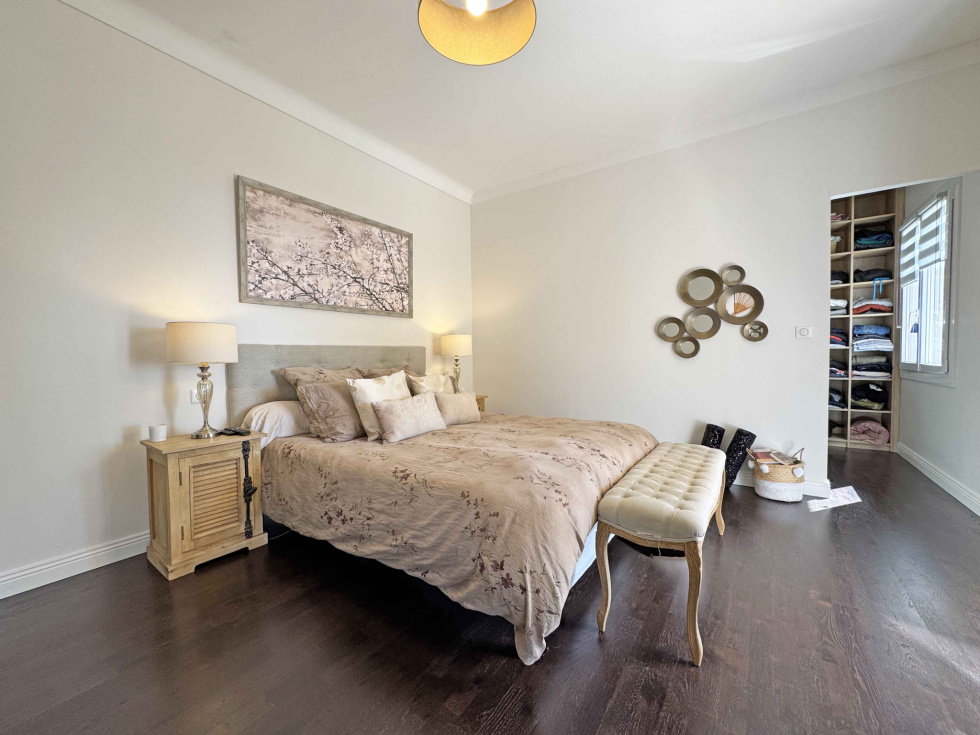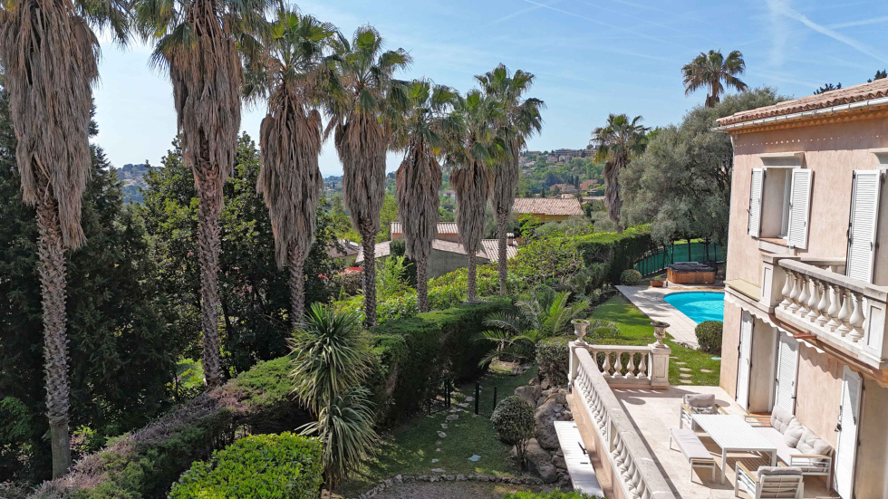 Située dans un quartier calme, villa de charme de 222 m2 habitables, bénéficiant d’une belle vue dégagée jusqu'à la mer et sans vis-à-vis. Jardin paysager de 2 578 m2 avec piscine chauffée de 12 x 5 m et jacuzzi. Exposition Sud.