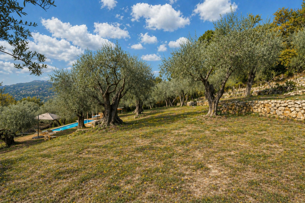EXCLUSIVITE Dans un environnement rare, préservé et d’un calme absolu, amoureux de calme et de nature, cette propriété nichée au cœur d’une oliveraie est faite pour vous ! Elle se compose d’une villa principale (2 chambres, 2 salles d’eau et un bureau) ainsi que d’un mazet indépendant comprenant une chambre et une salle d’eau. La villa offre de beaux volumes et des prestations soignées (sols en terre cuite, poutres: Une entrée desservant un vaste salon/salle à manger de 48 m² avec cheminée (insert récent), Une cuisine indépendante entièrement équipée, Une belle terrasse en partie couverte avec barbecue, Des toilettes invités, Une suite parentale climatisée de 15 m² avec dressing, salle d’eau neuve et toilettes, Un bureau, Une buanderie/cellier. À l’étage : une seconde chambre climatisée (13 m²) avec sa salle d’eau et toilettes. Le mazet indépendant propose une chambre climatisée avec salle d’eau et toilettes : idéal pour accueillir famille et amis, ou pour développer une activité de chambre d’hôtes. Annexes : atelier, grande terrasse couverte. Le terrain de 6.980m² en restanques, magnifiquement arboré, compte environ 70 oliviers ainsi qu’un avocatier, agrumes, figuier, etc. Vous profiterez également d’un superbe espace piscine avec terrasses en bois, barbecue et plancha. Piscine neuve au sel (12 m x 3). Terrain de pétanque. Prestations : panneaux solaires, climatisation réversible, borne de recharge électrique. Une propriété pleine de charme, offrant une atmosphère unique.Un véritable coup de cœur rare sur le marché !
