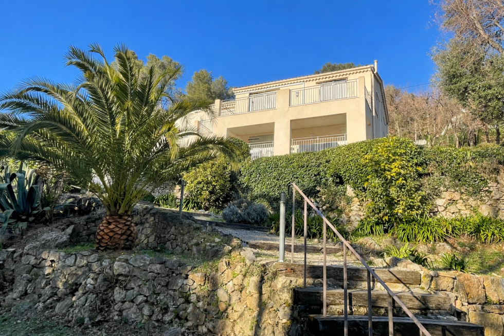 EXCLUSIVITE - A 5 minutes du charmant village médiéval de Tourrettes sur Loup, découvrez cette magnifique villa exposée plein Sud, au calme avec une belle vue dégagée sur les collines boisées. Construction de qualité offrant un grand confort : chauffage par le sol avec pompe à chaleur neuve, double vitrage, climatisation réversible, cheminée avec insert, alarme. Cette villa de 180m² propose de beaux volumes intérieurs avec ses grandes hauteurs sous plafond. Entrée, grand séjour avec cheminée, plafond cathédrale, belle cuisine équipée (plan de travail en pierre) ouvrant sur la salle à manger, bureau/5ème chambre, wc indépendant, buanderie/chaufferie. Grande terrasse couverte. Empruntez un bel escalier pour aller à l'étage : chambre de maître avec accès à un grenier et à une belle terrasse, salle d'eau avec douche à l'italienne et wc, chambre 2 avec salle d'eau et wc, Chambre 3 et 4, salle de bains complète avec douche, baignoire et wc. Grande hauteur sous plafond dans toutes les chambres. Belles terrasses. A l'extérieur, profitez d'une piscine et sa belle terrasse donnant sur un terrain de 2.500m² en restanques. En complément : un beau chalet de jardin, de nombreux stationnements et une fosse septique "aux normes". L'avis de l'agence : cette propriété très bien entretenue est en parfait état, elle allie confort et sérénité dans un cadre verdoyant. Toutes les pièces sont grandes et agréables ouvrant sur des terrasses. Si vous recherchez une villa de qualité, une visite s'impose !